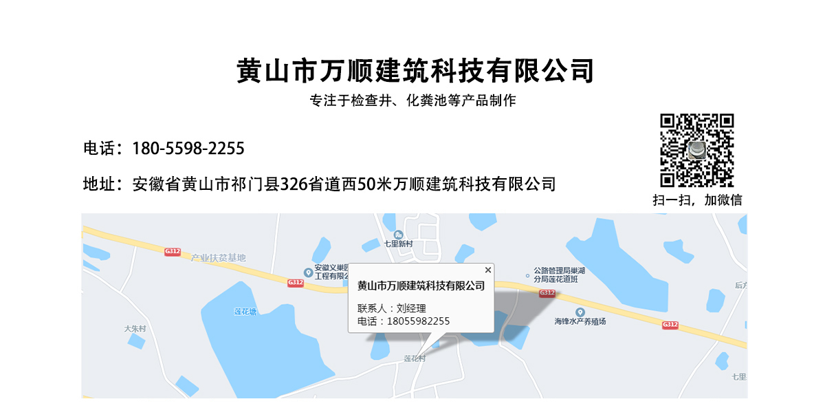 黃山市萬順建筑科技有限公司是集研發(fā),生產(chǎn)制造,市場推廣為一體的綜合性企業(yè)。公司主要經(jīng)營環(huán)保型預(yù)制鋼筋混凝土裝配式組合型檢查井和蓄水裝置等城建配套產(chǎn)品。產(chǎn)品生產(chǎn)過程采用獨特的生產(chǎn)工藝,機械化流水作業(yè)。產(chǎn)品大規(guī)模生產(chǎn),生產(chǎn)效率高,耗能少,成本低,產(chǎn)品使用壽命長、免維護、無滲漏、無污染,符合“綠色環(huán)保,低碳節(jié)能”的發(fā)展要求,是傳統(tǒng)磚砌井池的理想替代產(chǎn)品。
